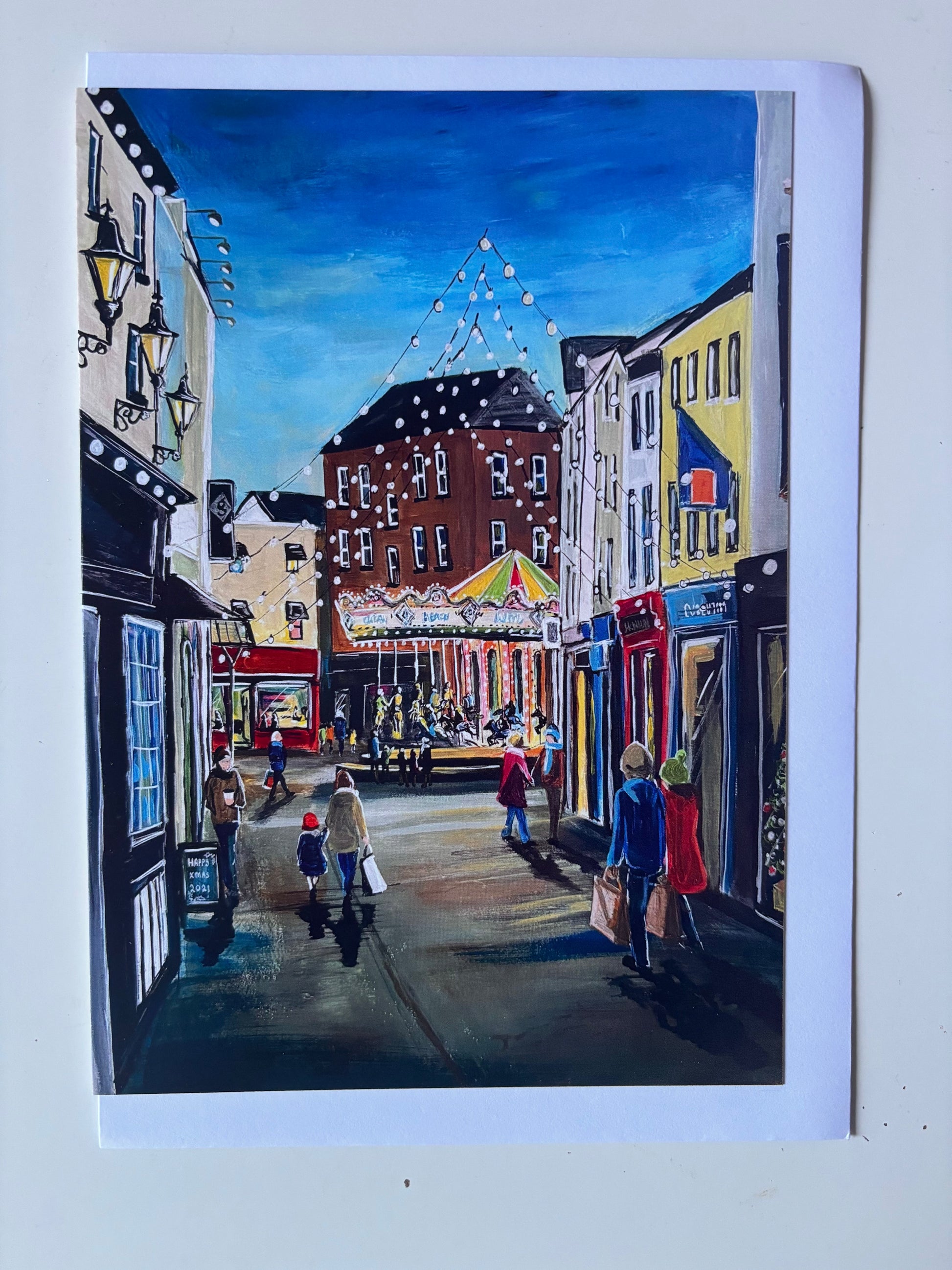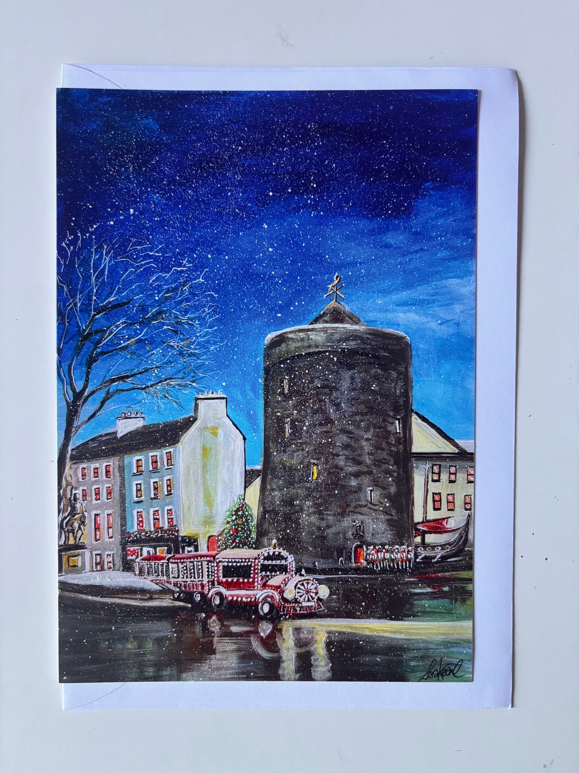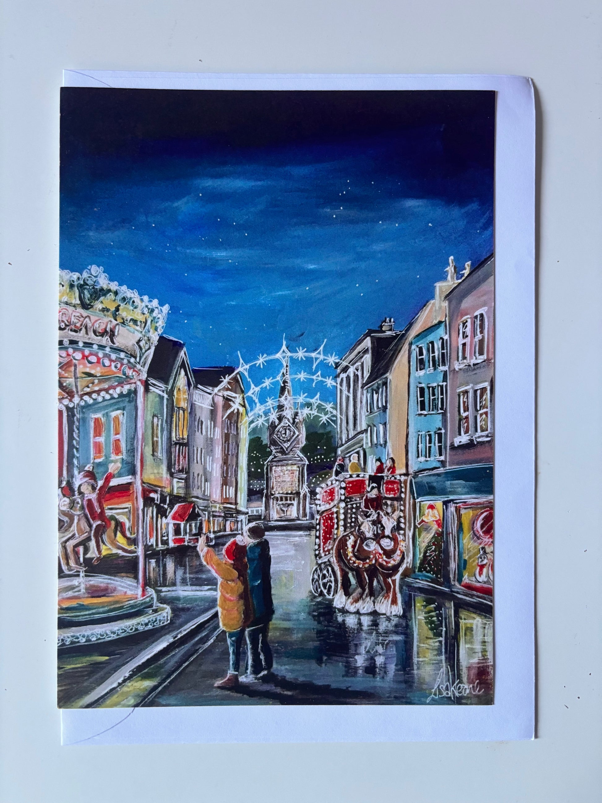 A colourful selection of festive Waterford scenes. The paintings on each of these 7 cards have appeared on the cover of the Waterford News And Star Festive Star Christmas Annual. Each card is A5 size, blank on the inside and comes with a white envelope. Please leave me a comment to let me know which cards you would like in your selection 🎄