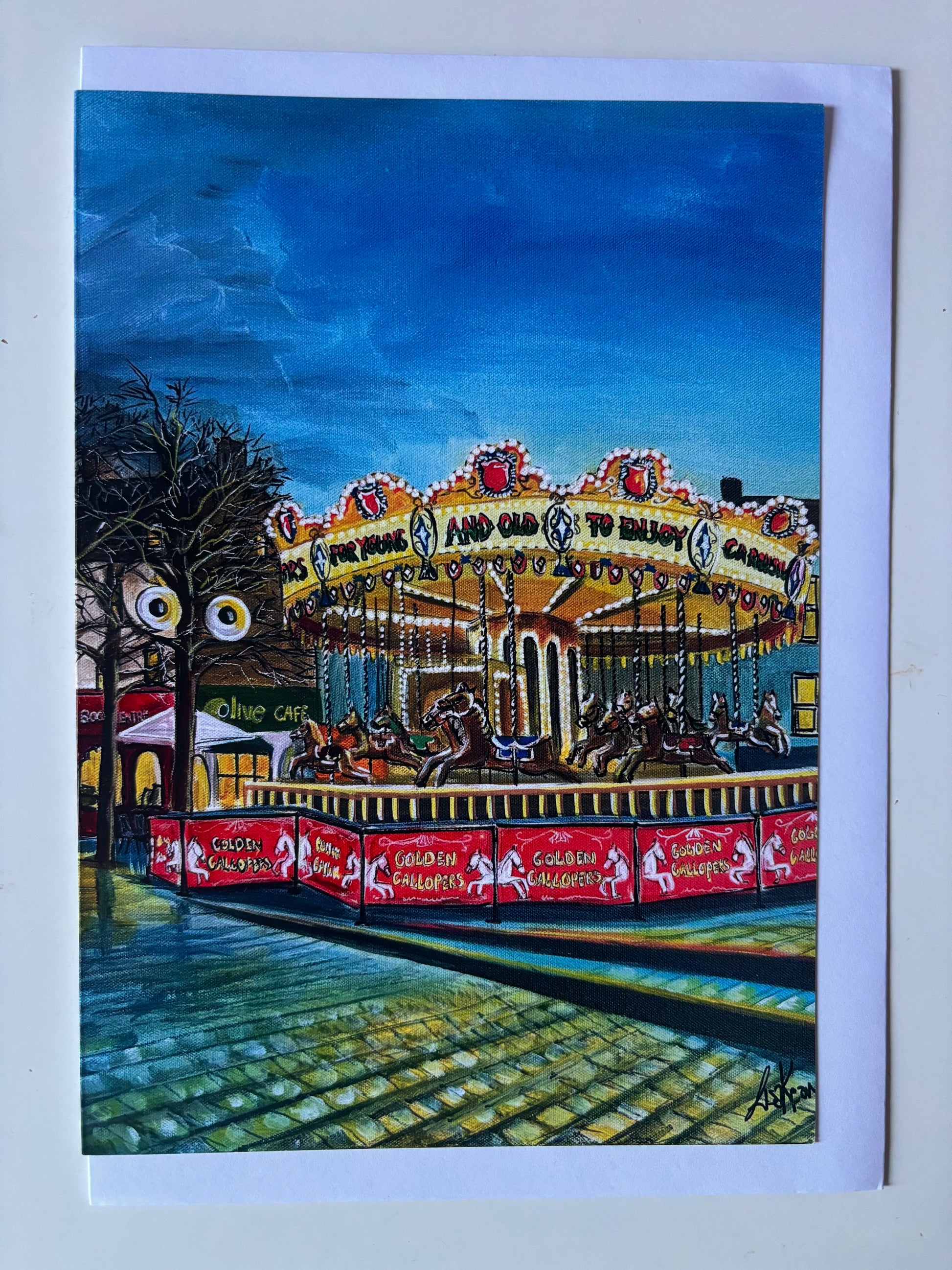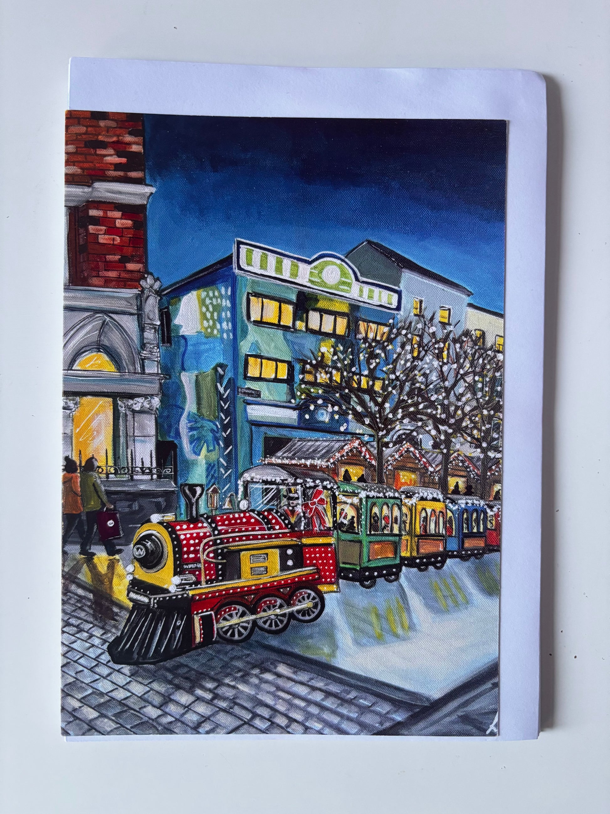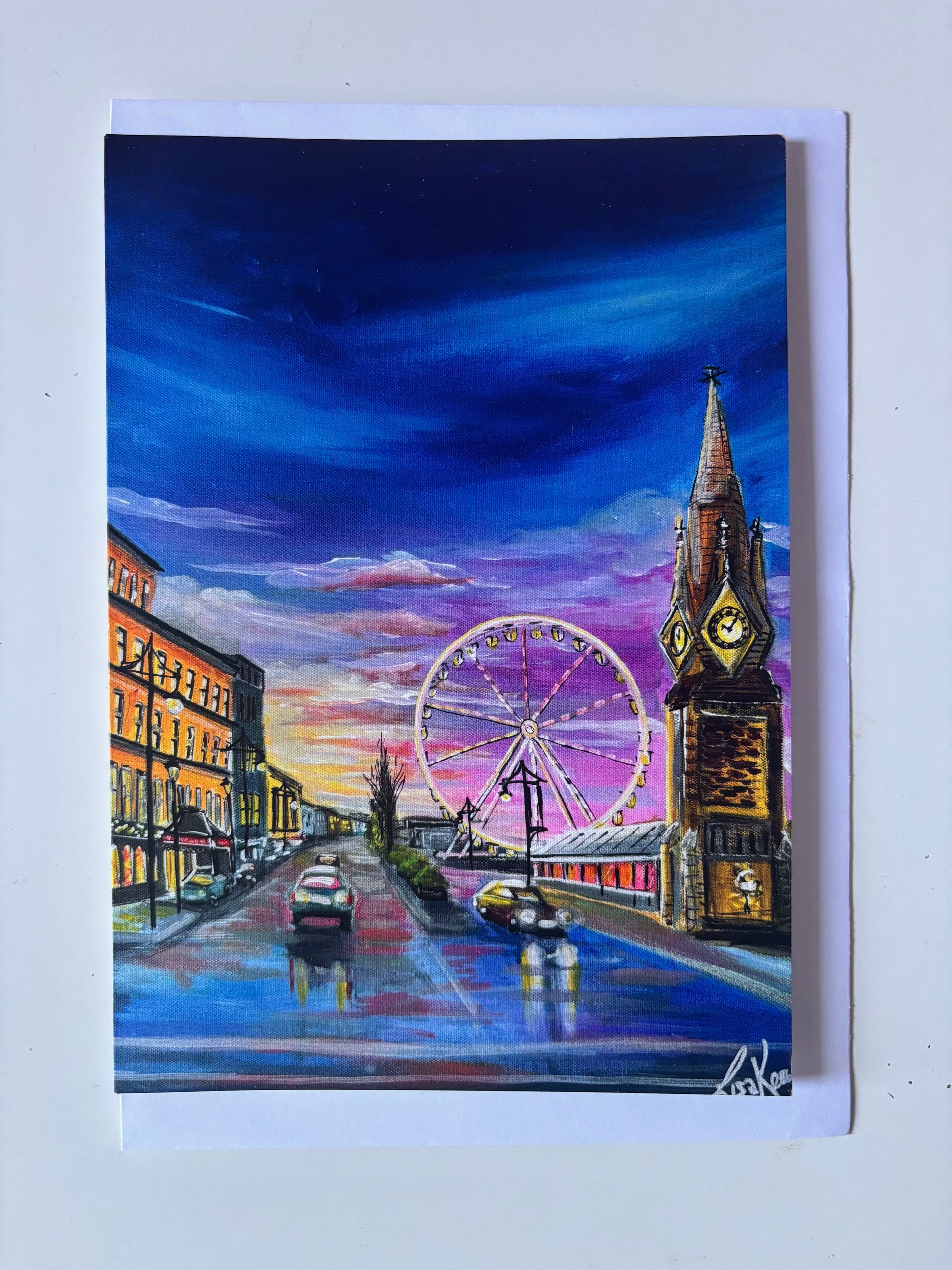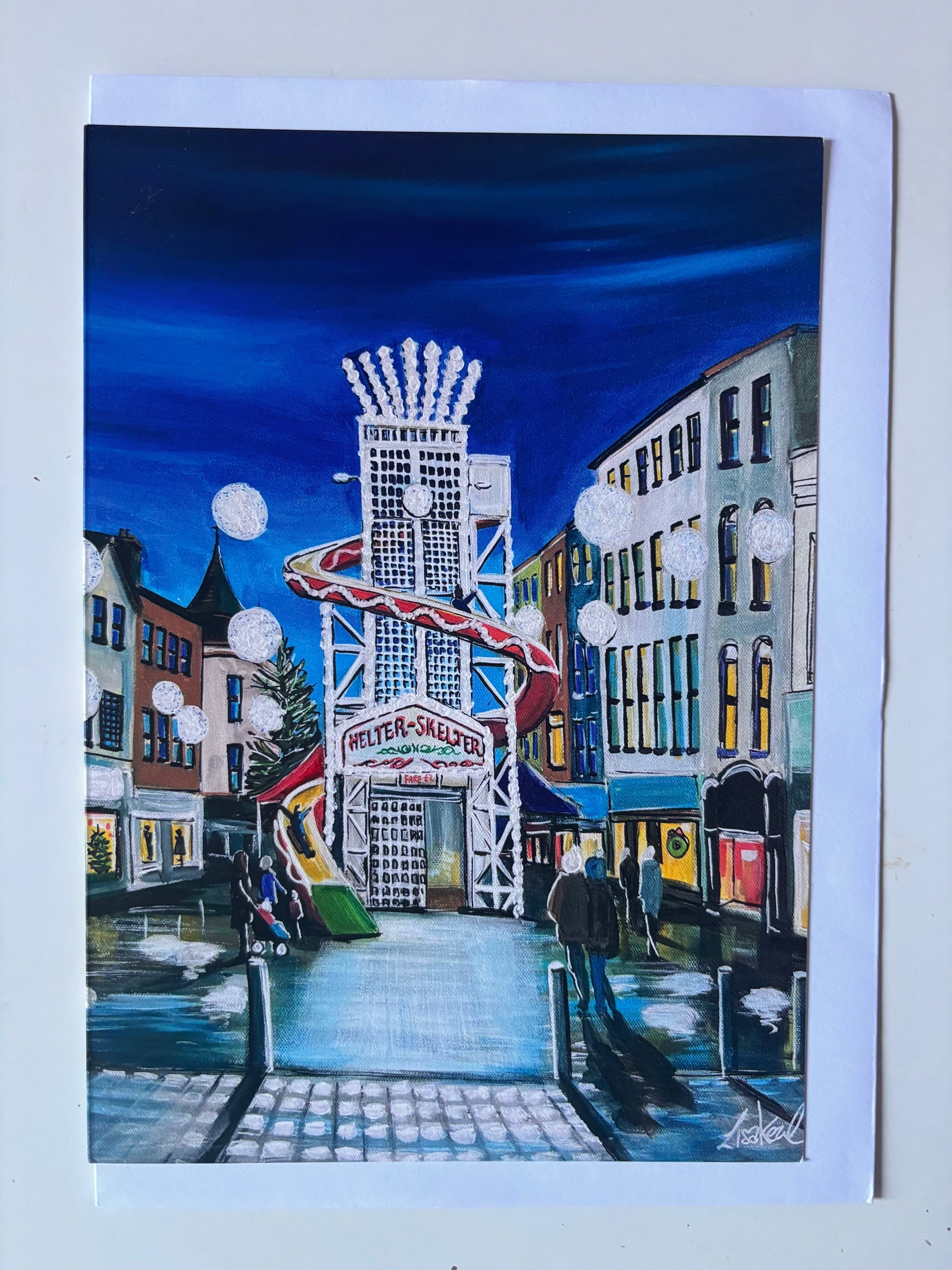 A colourful selection of festive Waterford scenes. The paintings on each of these 7 cards have appeared on the cover of the Waterford News And Star Festive Star Christmas Annual. Each card is A5 size, blank on the inside and comes with a white envelope. Please leave me a comment to let me know which cards you would like in your selection 🎄